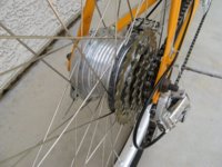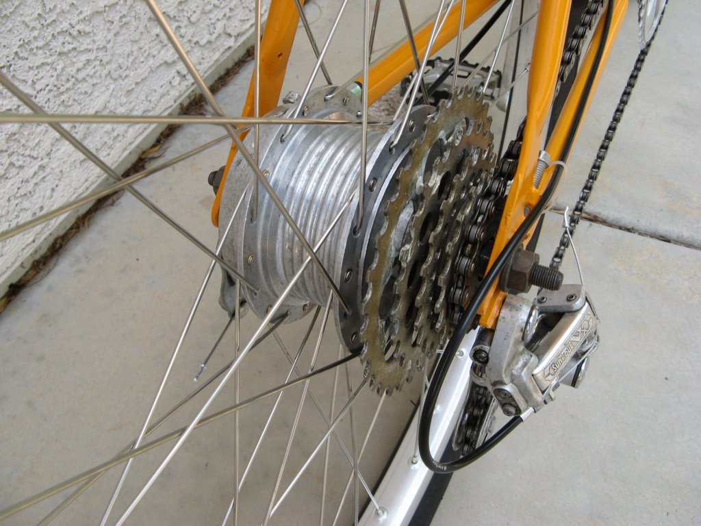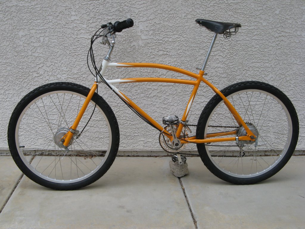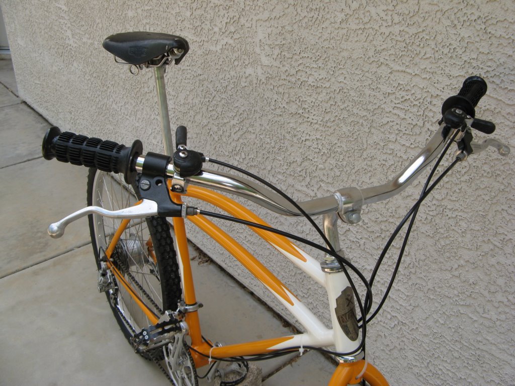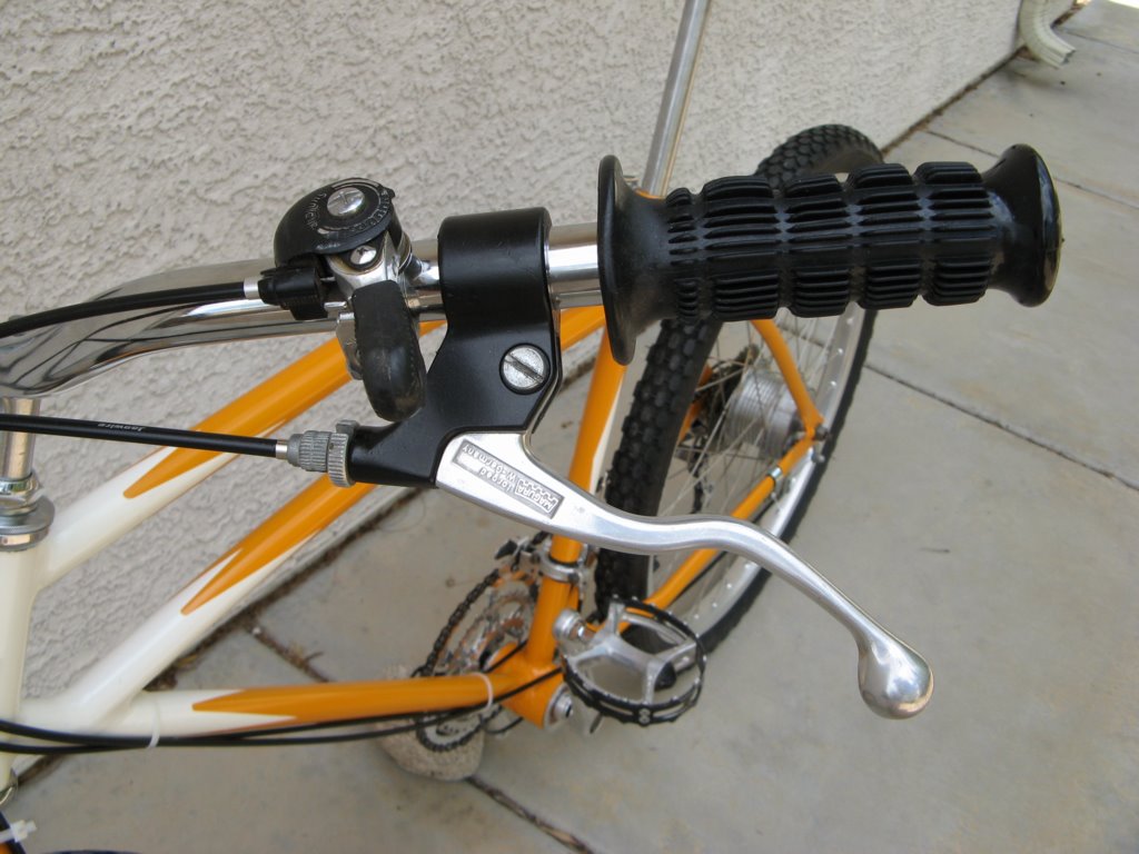 style handlebars with Schwinn Stingray stem. Suntour thumbshifters