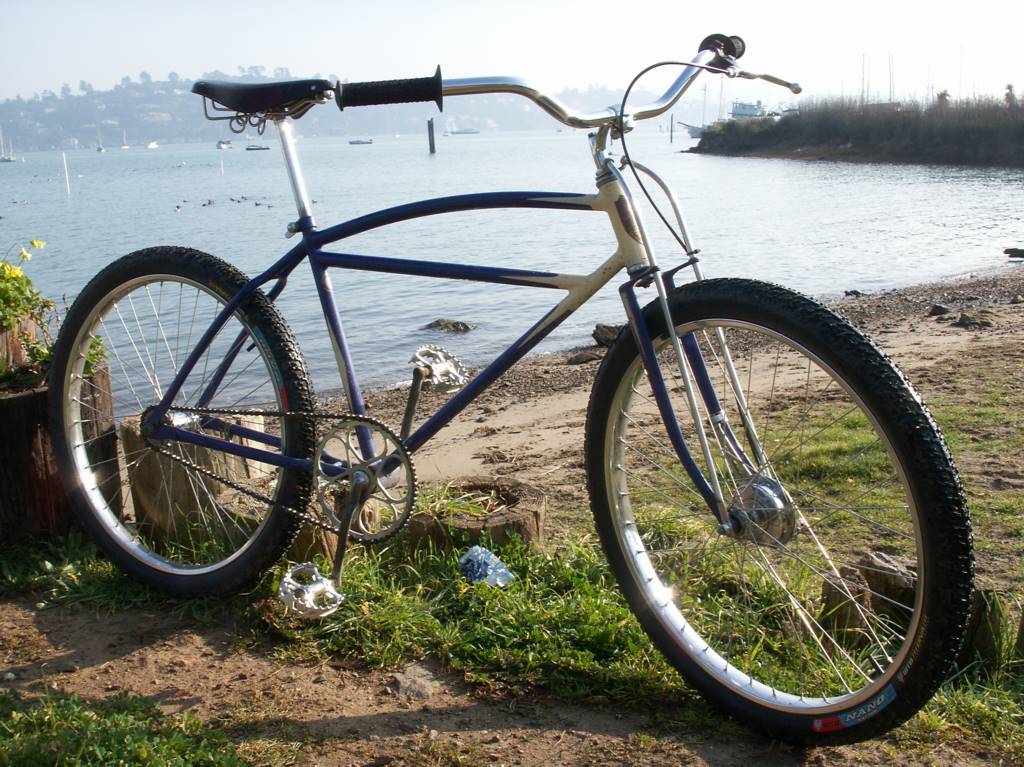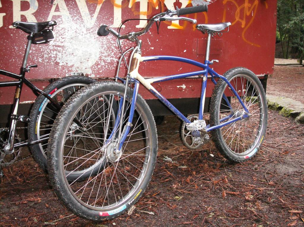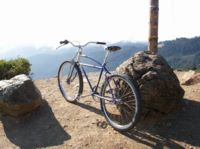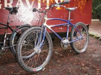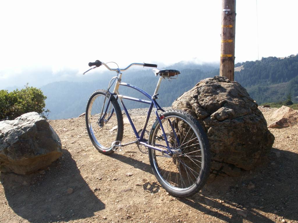 As a teen I fondly recall bombing down Tam on a Sausalito flea market special pre-war bike. I had no direct contact with the folks who were making history on the western slopes of the mountain, but the equipment used was surprisingly similar - it had to cope with and regularly survive the same rigors. I started with a motorbike frame and Morrow coaster and added Sturmey Archer drum, Ashtabula neck, forks and cranks to replace things as they failed. Spokes and rims were the hardiest that would fit, Magura bars and levers with beefy cables from a local motorcycle shop helped eke some extra performance from the front drum. Along the way cantilevers were brazed on in back - three brakes and on some rides you needed them ALL. But I never got past the single speed coaster, it was a strictly downhill "bilge cruiser" from the houseboats - the bomber was lost in the early 80s and I went right onto a Fisher.