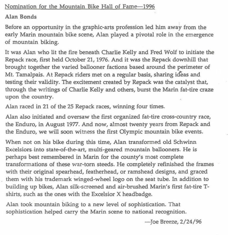 for the Mountain Bike Hall of Fame. This unexpected burst